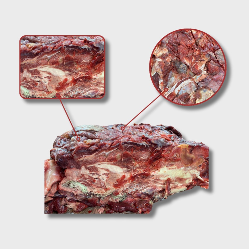 Рекомендации:Котлетное Мясо (говядина)! Более жирная, чем бескостное Мясо, но кардинально отличается от корпусной обрези. Жирность 30-40%. Прекрасная замена диафрагме с мембраной! Отличная мясная составляющая